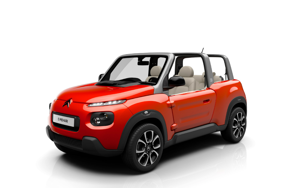 de Mehari, o mașină pe care Citroen a vândut-o în anii '60-'70 în aproape 150.000 de exemplare.Citroen adusese la Frankfurt conceptul Cactus M, pe care toată suflarea franceză l-a văzut ca pe un viitor urmaș al lui Mehari. Deși constructorul din Hexagon negase la acea oră faptul că prototipul anunță un model de serie, nu au trecut nici 3 luni de la acel moment și marca franceză prezintă noul e-Mehari, un model 100% electric care va fi produs în serie exact așa cum îl vedeți în fotografiile atașate.